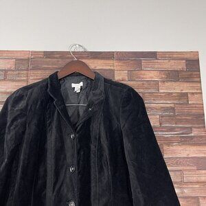 Chicos Size 0 (Small) Long Velvet Coat Black Lined Cotton Pockets