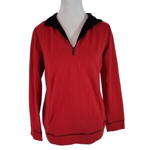 Chico's Size 0 US S Weekends Pullover Red Black Henley 1/4 Zip Sweatshirt Casual