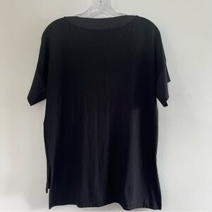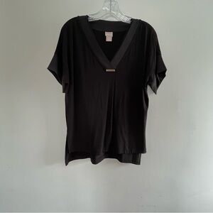 Chico’s Size 0 (U.S. size small) black short sleeve flowy v-neck knit top EUC