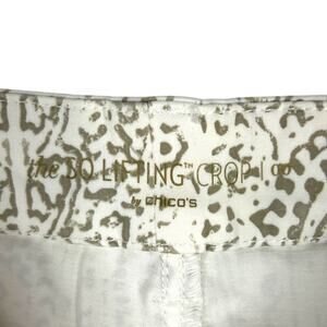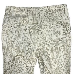 Chicos Size 00 US 2 XS So Lifting Ikat Crop Jeans White Tan Print Pants Preppy