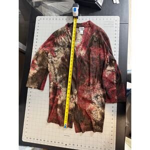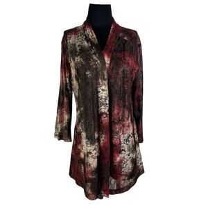 Chico's Size 1 Abstract Lace Mesh Open Cardigan Kimono Shawl Black Red Brown