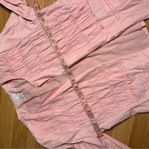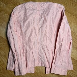 Chicos Size 1 Baby Pink Open Front Business Casual Jacket crinkle Detail Front