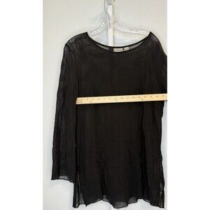 Chico’s Size 1 Black Sheer Embroidered Tunic Blouse Boho Long Sleeve Overlay Top