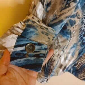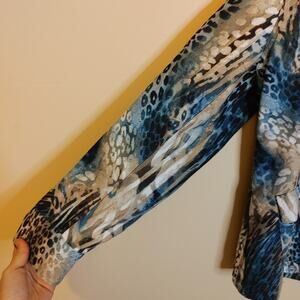 Chico's Size 1 Blazer Animal Print Faux Suede Soft Blue Tan Unique Eccentric Top