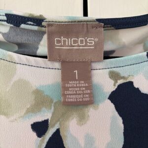 Chico’s Size 1 Floral Print Women's Dress Blue Shift Midi Chicos Size Medium