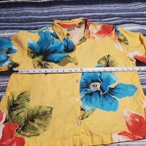 Chico's Size 1 (M) 100% Linen Shirt Yellow Floral Button Up FLAW