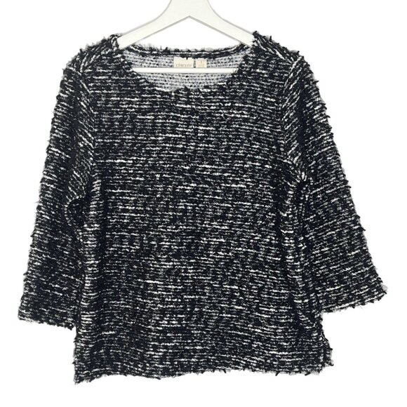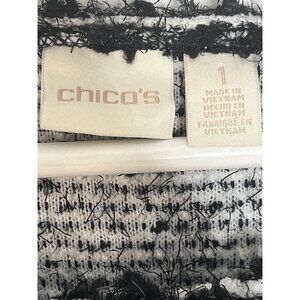 Chico’s Size 1 (M) Black/White Metallic Chunky Knit Pullover | Fall Cozy ✨🖤
