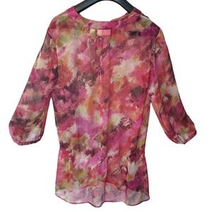 Chicos Size 1 M Tunic Top Sheer Blouse Pink Orange Elastic Drop Waist