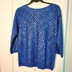 Chico's Size 1 Marine Blue Open Weave Pullover Round Neck Sequined Sweater GUC