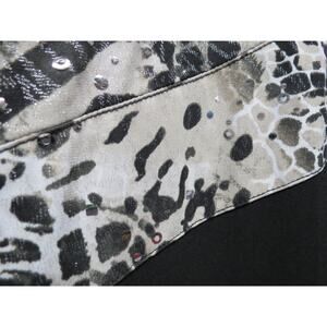 Chico's Size 1 Medium Assymetric Diagonal Stripe Black Animal Print Sparkle Top