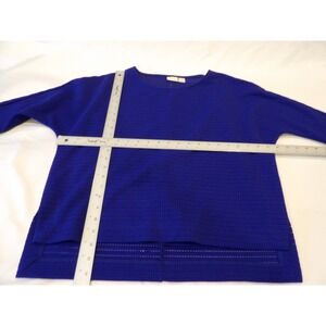 Chicos Size 1 Medium Blouse Blue Mesh Layered Cutout Boho High Low Batwing