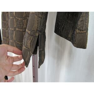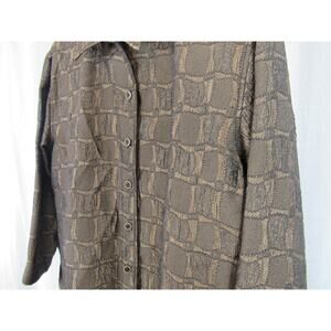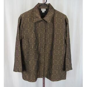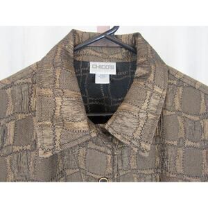 Chico's Size 1 Medium Brown Gold Shirt Jacket Shacket Button up Collared Funky