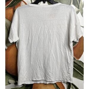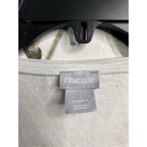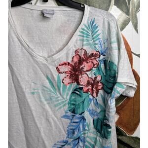 Chicos Size 1 Medium Floral Short Sleeve Linen Blend Tee Shirt V Neck