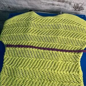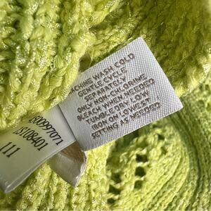 Chico's Size 1 Medium Open Knit Sweater Lime Green Half Sleeve Coastal Summer Sweater