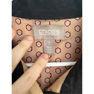 Chicos Size 1 Medium Womens Tan Coat Black Corduroy Collar Long Line NEW
