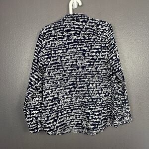 Chico's Size 1 No-Iron Love at First Sight Caroline Button Down Shirt Blue White