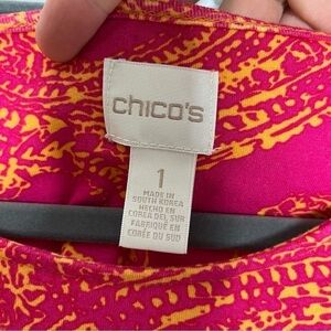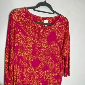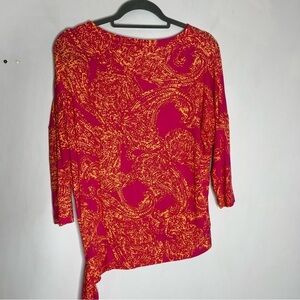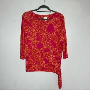 Chicos Size 1 Pink Side Tie Pink Pattern 3/4 Sleeve Top