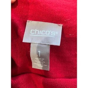 Chico’s Size 1 Red Long Sleeve Cotton Blend Top Black Piping Trim Neck & Sleeves