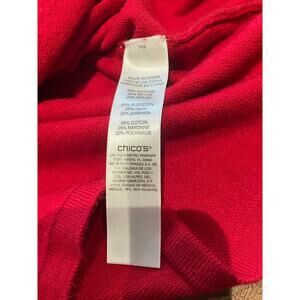 Upgrade your wardrobe with this stylish Chico’s red long sleeve top, size 1 (equivalent to a US Medium). Made from a soft and breathable cotton blend, this top features eye-catching black piping along the length of the sleeves and around the neckline, adding a modern, elevated touch.
