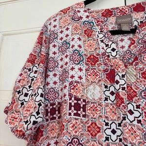 Chico’s Size 1 Tile Paisley Floral Patterned High Low Top Chicos Size Medium