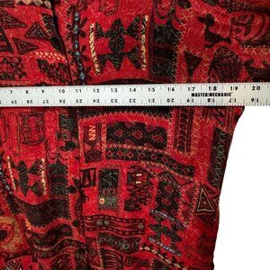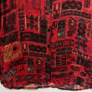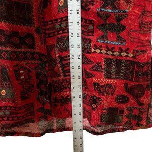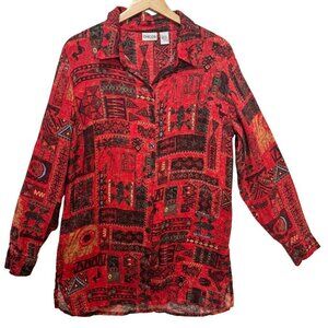 Chico's Size 1 US 8 Tunic Top Linen Aztec Southwest Button Front Red Tortoise Bu