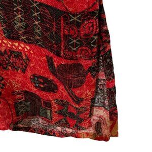 Stylish Chico's tunic top is crafted from 100% linen. The top features an Aztec Southwest button front design in a vibrant red color and unique tortoise buttons.