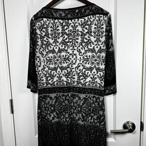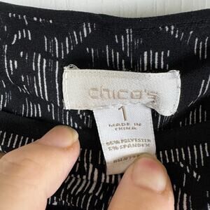 Chico’s Size 1 US 8/10 3/4 Sleeve Sheath Knee Length Black White Gray Stretch