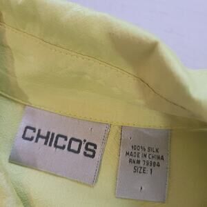 Chico's Size 1 US M 100% Silk Neon Yellow Button Up Collared Top Business Office