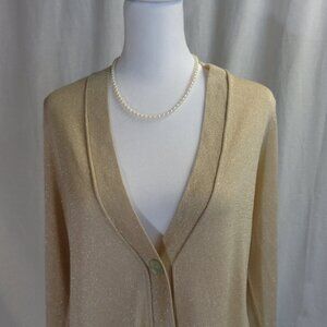 Chico's Size 1 U.S. Size Medium (8) Beige and Gold Button Front Cardigan