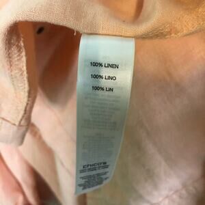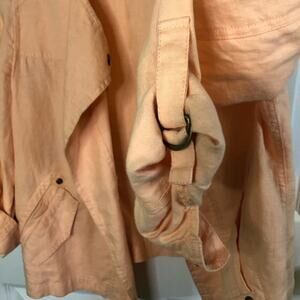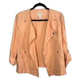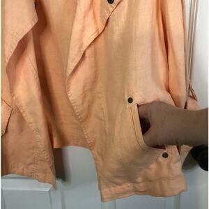 Chico's Linen Jacket - 100% linen, adjustable sleeves, pockets, peach color, decorative snaps, open drape front.