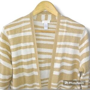 Chico's Size 1 Zebra Print Open Cardigan-Wool Blend-Medium/8-Metallic Shimmer