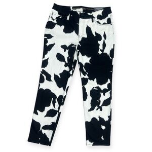 Chicos Size 10 Petite Black And White Abstract Floral Girlfriend Fit Ankle Jeans