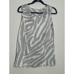 Chico's Size 1/M Ivory/Tan Sleeveless Tank Scoop Neck 100% Polyester