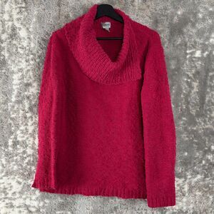Chicos Size 1/M Mock Neck Sweater Pink Long Sleeve Pullover Outdoor Chunky Knit