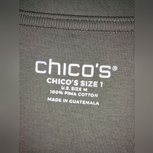 Chico's (Size 1/M/8) Olive 100% Pima Cotton Everyday 3/4 Sleeve Basic Layer Top