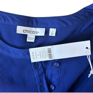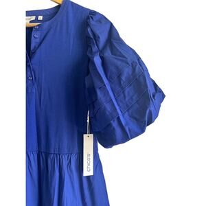 Chico’s Size 1US Medium Blue Tiered Puff Sleeve Midi Dress NEW