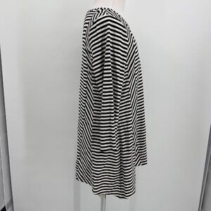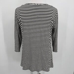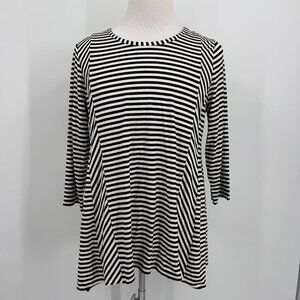 Chico’s Size 2 Black White Striped Tunic Top Women’s 3/4 Sleeve Stretch Knit Top