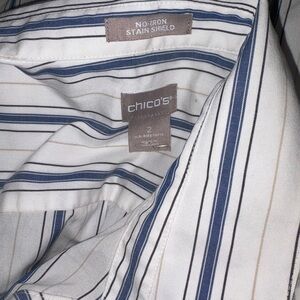 Chicos Size 2 Button Down Shirt 3/4 Sleeve Cotton Stretch