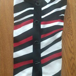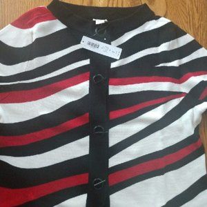 Beautiful Chico's Red, black and white cardigan, never worn! Perfect for the office or pair with jeans or nice slacks.