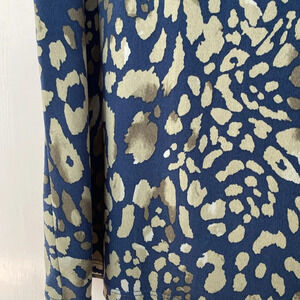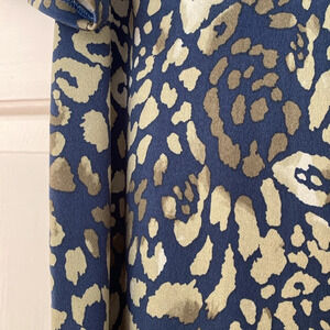 Chico’s top in animal print. Greens and blues make the leopard print on this gorgeous blouse. Metal grommet for a tie at the bottom. Preowned no flaws!
