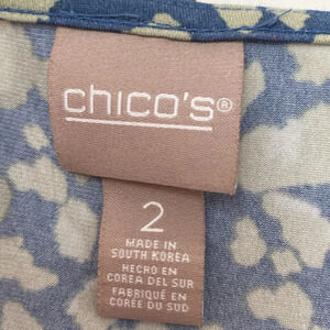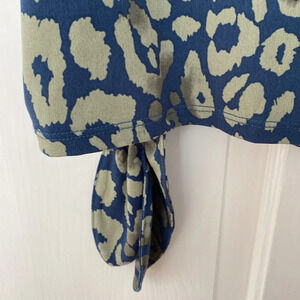 Chico’s Size 2 Green Blue Leopard Print Animal Print Tie Blouse Chicos Large