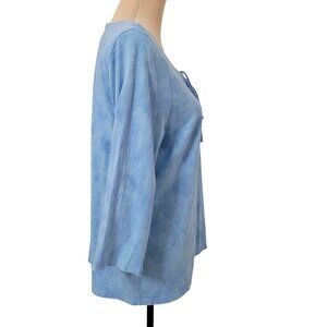 Chicos Size 2 (L / 12) Blue Tye Die Tunic Top, 3/4 Sleeve Lace Up Front Detail