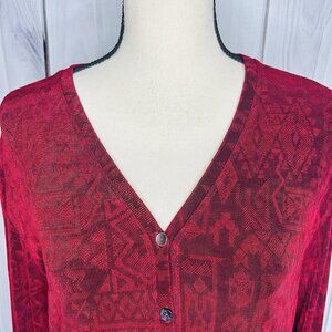 Chicos Size 2 (L 12) Dark Red Cardigan Slinky Button Up V-Neck