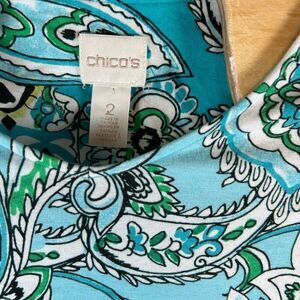 Chico's Size 2 (Large) 3/4 Sleeve Turquoise Blue Paisley