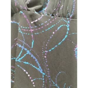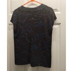 Chico's Size 2 (Large) Black Swirl Abstract Drip Pattern V-Neck Cap Sleeve Top
