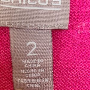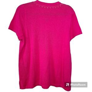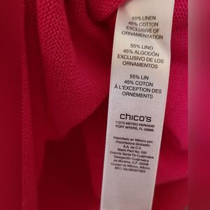 This Hot Pink V-neckline Linen Blend Short Sleeve Lightweight Sweater from Chico's is available in a Chico's Size 2 or a size large.