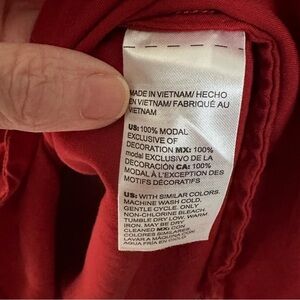 Chicos Size 2 Large Sandwashed Satin Ruffle Blouse Orange Red Lace Up Blouse Top