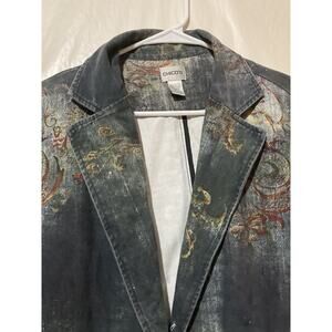Chico's Size 2 (Large) Soft Jacket Painted Jean Look 100% Cotton