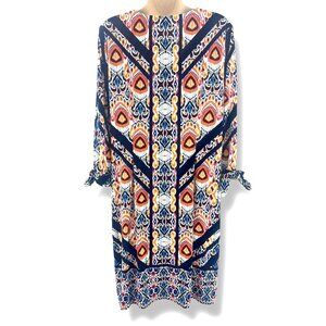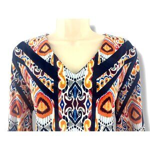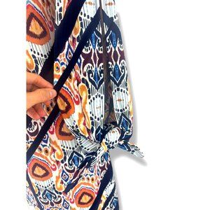 Chico's Size 2 = Large/12 Ikat Multi-Color Print V-Neck Tie-Sleeve Shift Dress