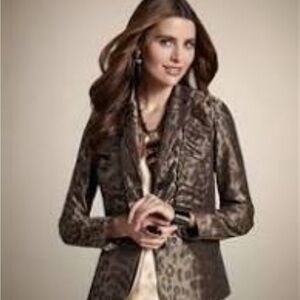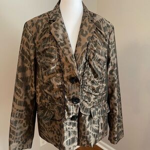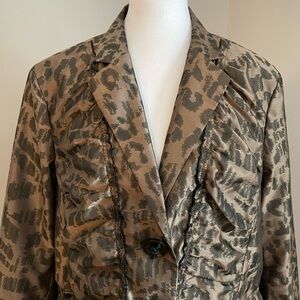 NWT Leopard-printed jacquard shines in a copper palette. Ruching and ruffles add feminine touches to the blazer-style silhouette.